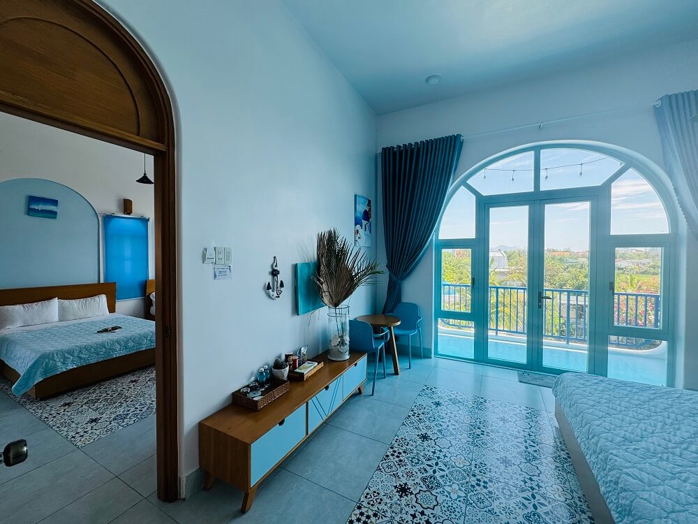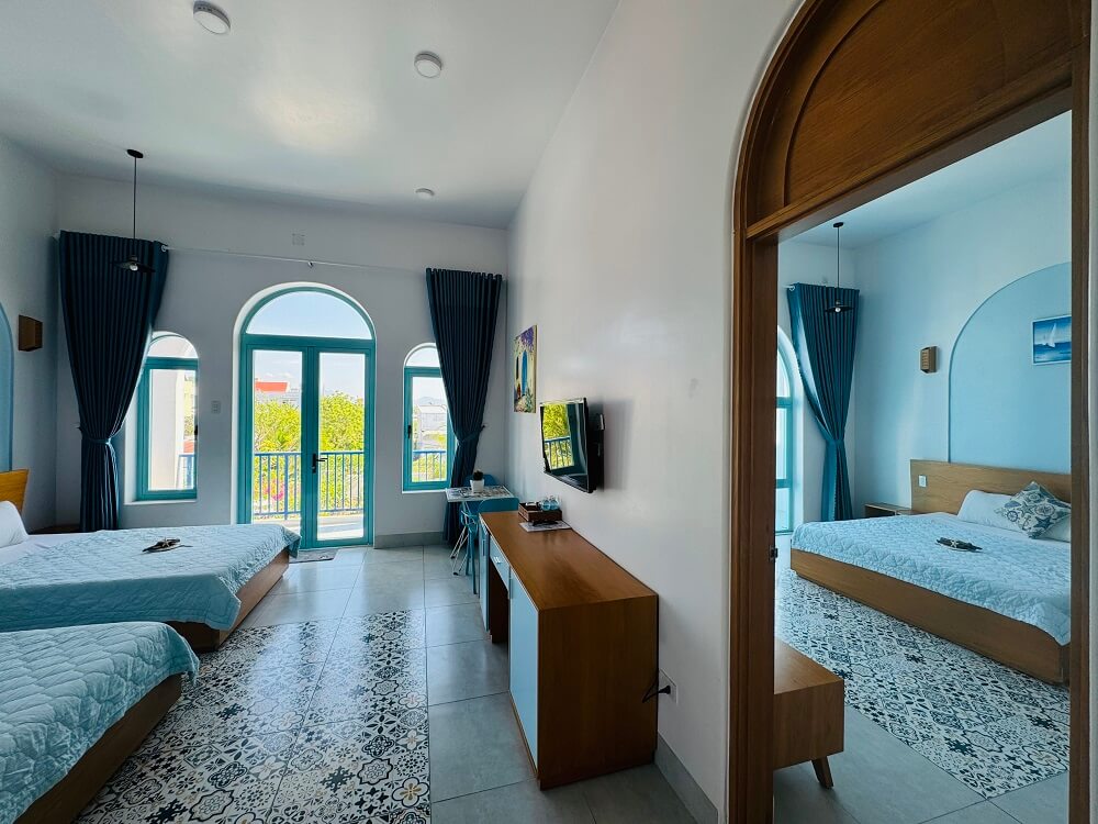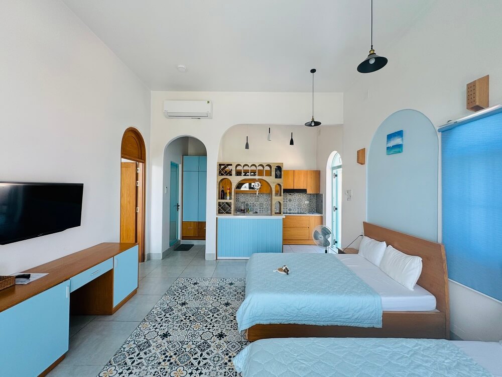 Villa Santorini Cam Ranh | Căn hộ gia đình 3 giường 6 người | Diện tích sử dụng: ~ 60m2.